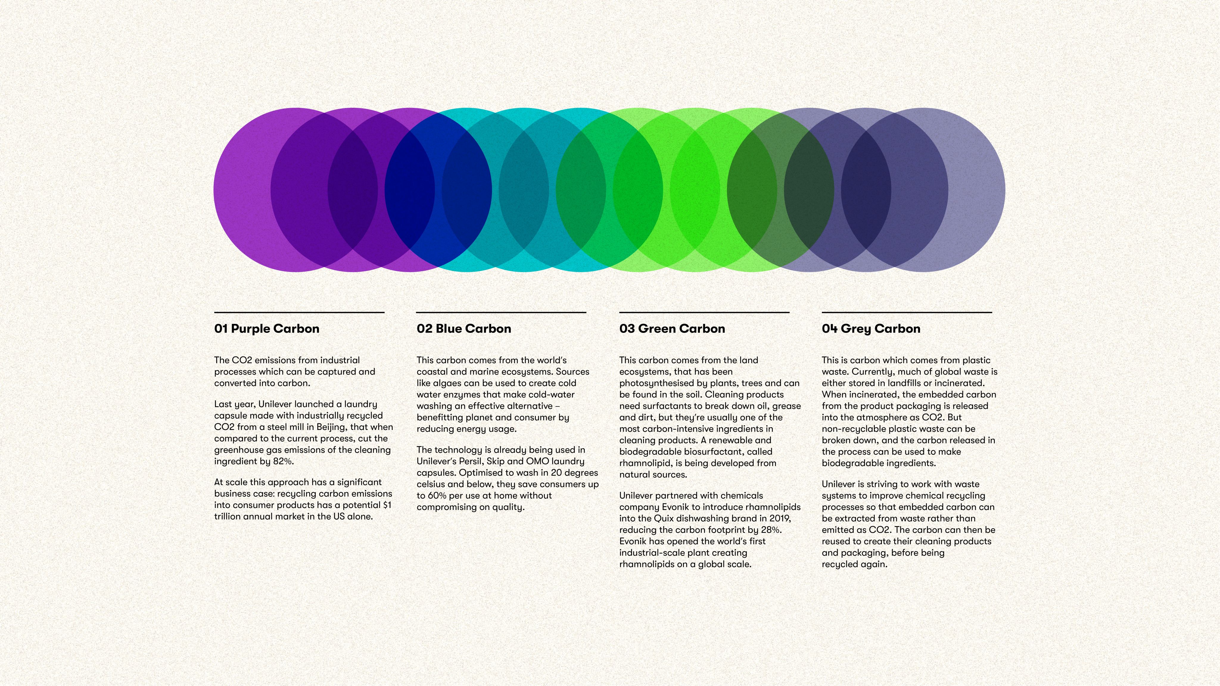 Instead of using the fossil fuel sourced ‘black’ carbon, Unilever is using carbon from sources already above the ground in its pioneering initiative: The Carbon Rainbow.
