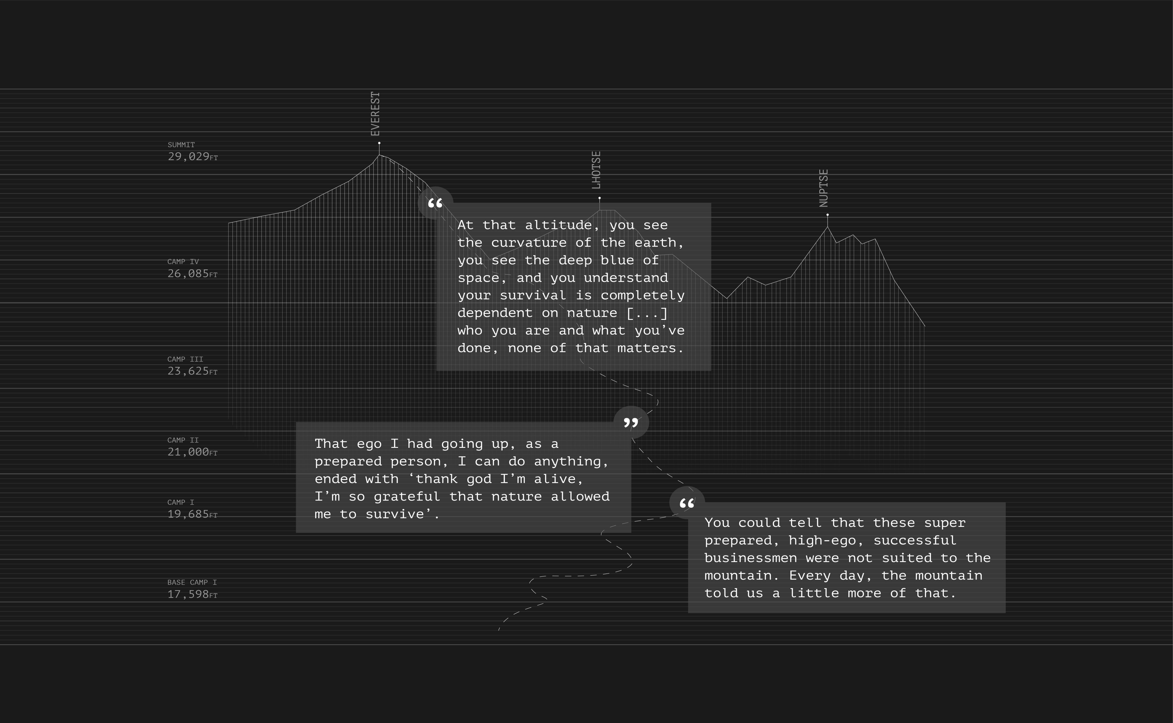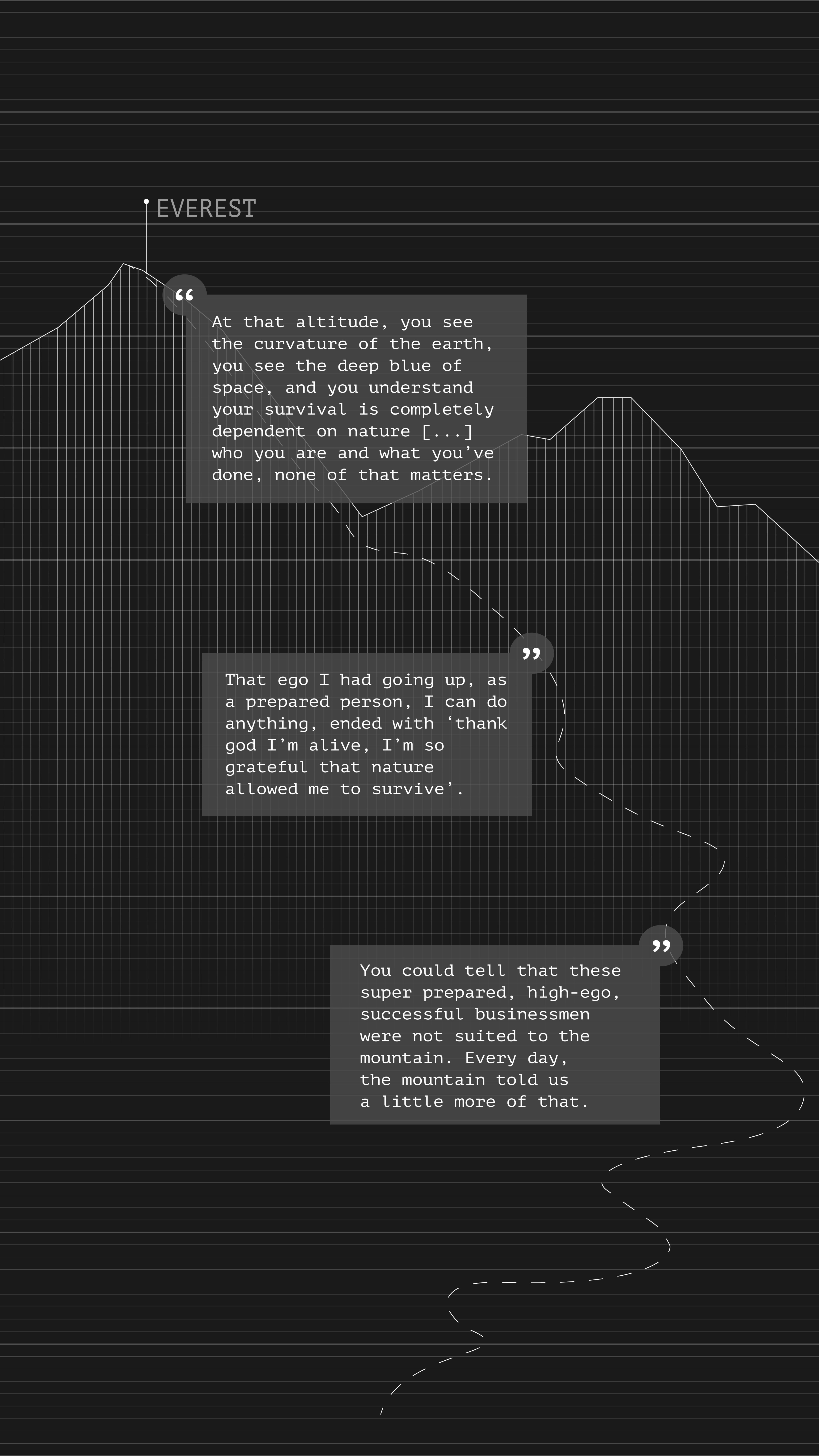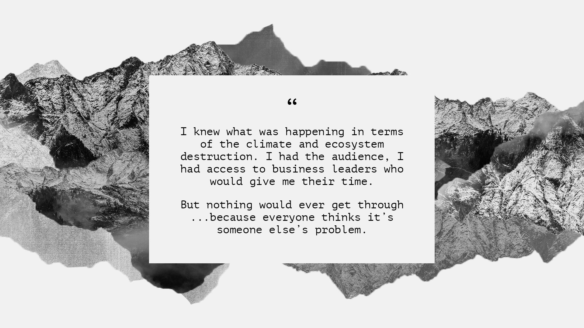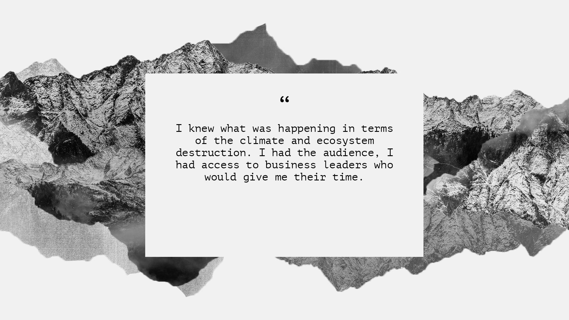 This expedition had a profound impact on him. Faced with the reminder that humanity’s survival relies completely on nature, the trip led him to question his own sense of self and transformed his approach to business.